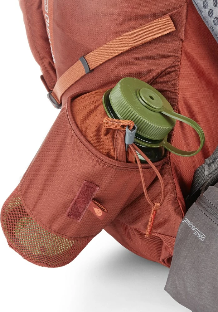 - Stretch-mesh side stash pocket is large enough for a second water bottle, trekking poles, sandals or snacks
