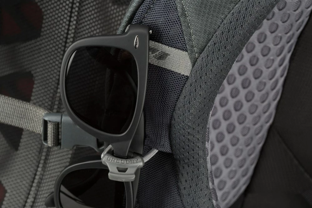 - Sunglass quick-stow system on shoulder harness provides quick, secure and scratch-free access to your shades without taking the pack off