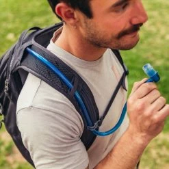 - Perforated shoulder harness provides a comfortable carry; magnetic sternum buckle and hose clip hold the Drylock bite valve on the shoulder harness for easy access to H2O