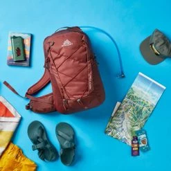 Traveling or trekking? The men’s Gregory Inertia 18 H2O hydration pack transitions from trail to transit with zippered pockets and a reservoir compartment that converts to a small laptop sleeve.