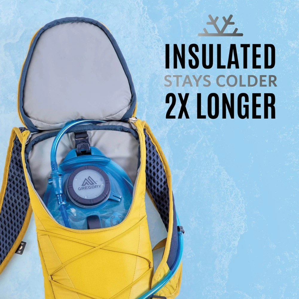 - Insulated hydration compartment combines a vapor-barrier liner with specialized insulation to keep water cold for up to 4 hrs.