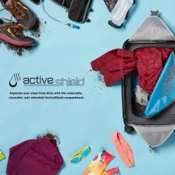 - Removable, cleanable ActiveShield Compartment is designed for the active traveler to keep dirty or wet clothing and gear separated for vapor, odor and dirt protection