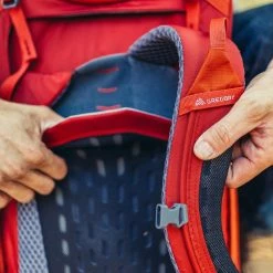 - Suspension features a fully adjustable torso length, wishbone alloy frame and breathable, perforated shoulder harness, back panel and hipbelt