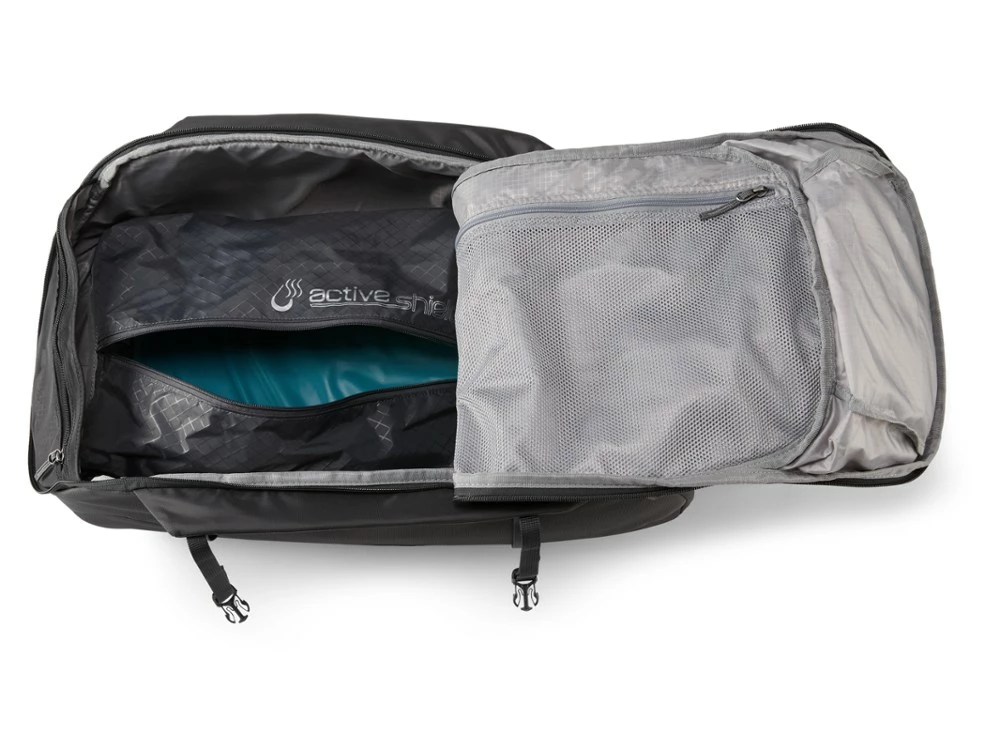- ActiveShield zippered compartment has a thermoplastic urethane coating that resists moisture, dirt and odors—perfect for isolating dirty or wet clothing and gear