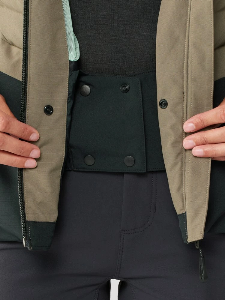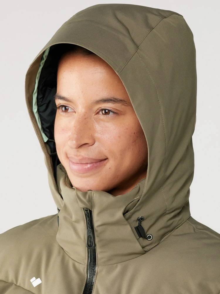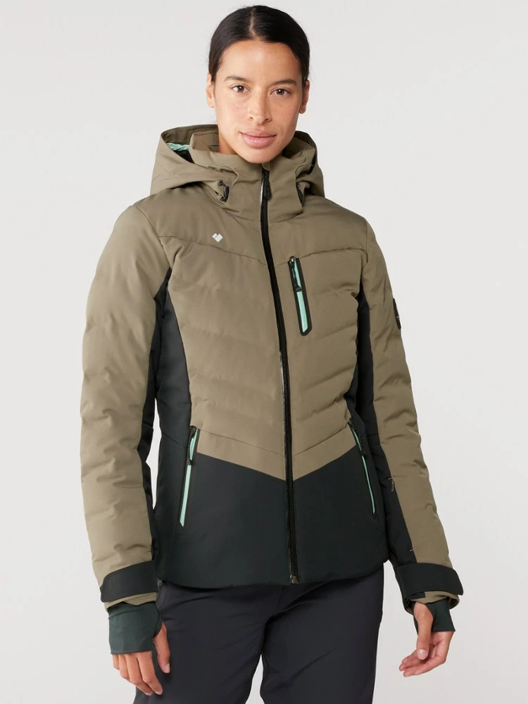 On or off the mountain, the women’s Obermeyer Cosima down jacket is feature loaded to keep you comfortable—it includes waterproof/breathable fabric and a warm blend of down and synthetic insulation.