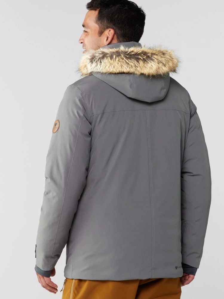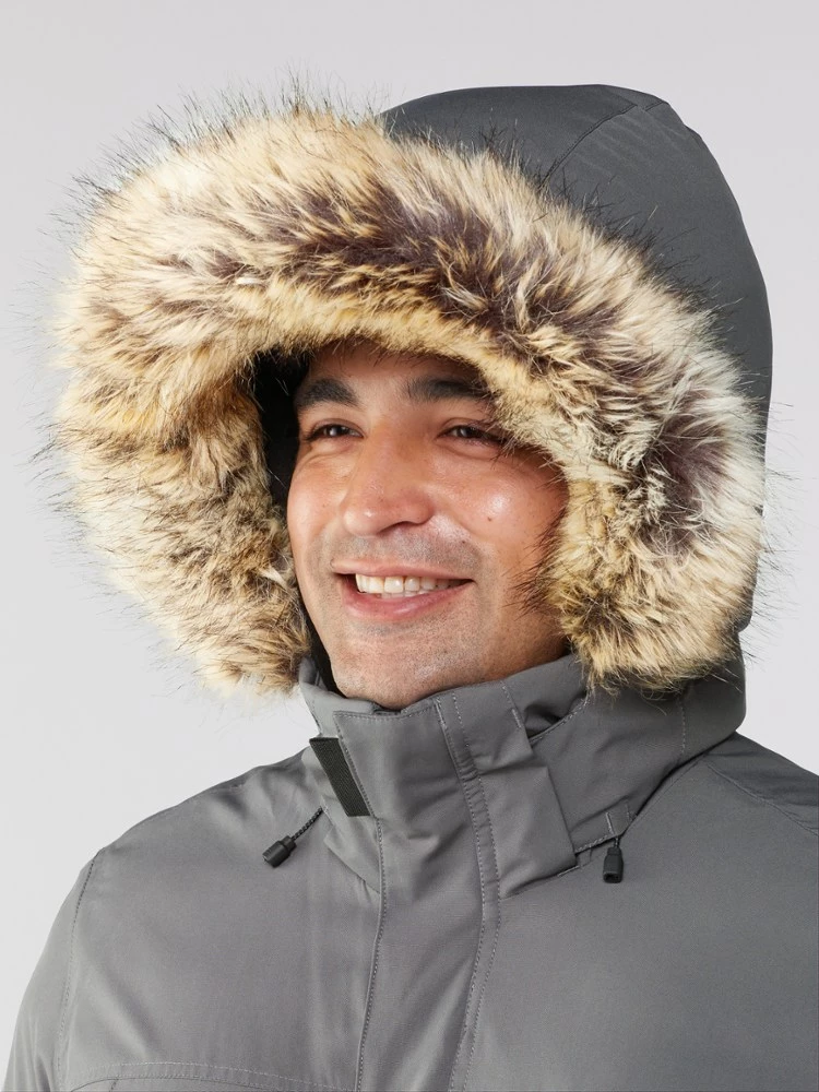 - Synthetic down insulation with 600-fill-power equivalent insulation and coyote faux fur help keep you cozy as temperatures drop