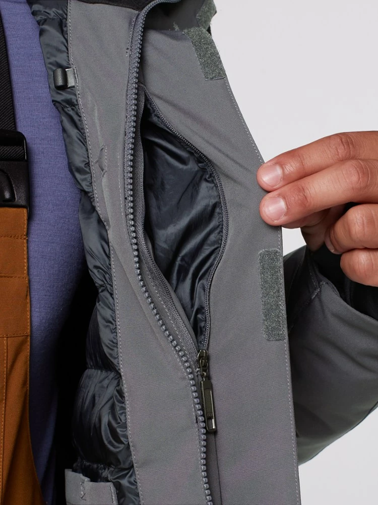 - Zipper chest pockets; zipper handwarmer pockets; flap pockets; zipper pass pocket; Napoleon pocket